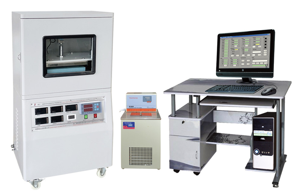 采用國際上流行的熱流計檢測導(dǎo)熱系數(shù)和熱阻方法,配計算機實現(xiàn)全自動檢測,生成實驗報告。儀器采用在試樣一面加入穩(wěn)定的熱面溫度,熱量通過試樣傳遞到冷面,測量傳遞的熱流來計算導(dǎo)熱系數(shù)和熱阻。采用進口傳感器與計算機技術(shù),測量精度好,可靠性高,重復(fù)性好的特點。特別適用于低導(dǎo)熱系數(shù)的測量(精確至0.1mw)??捎糜谒芰稀⑾鹉z、保溫材料、氣凝膠板、真空玻璃等測試,廣泛應(yīng)用在大專院校、科研院所、質(zhì)檢、廠礦。